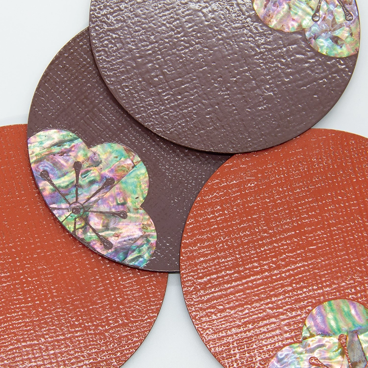 봄의 시작을 알리는 매화를 모티브로, 자개와 옻칠을 활용해 제작된 감각적인 컵받침 세트입니다. 알루미늄 위에 자개로 매화 문양을 표현하고, 삼베 결을 살린 옻칠을 더해 자연스럽고 고급스러운 질감을 완성했습니다.