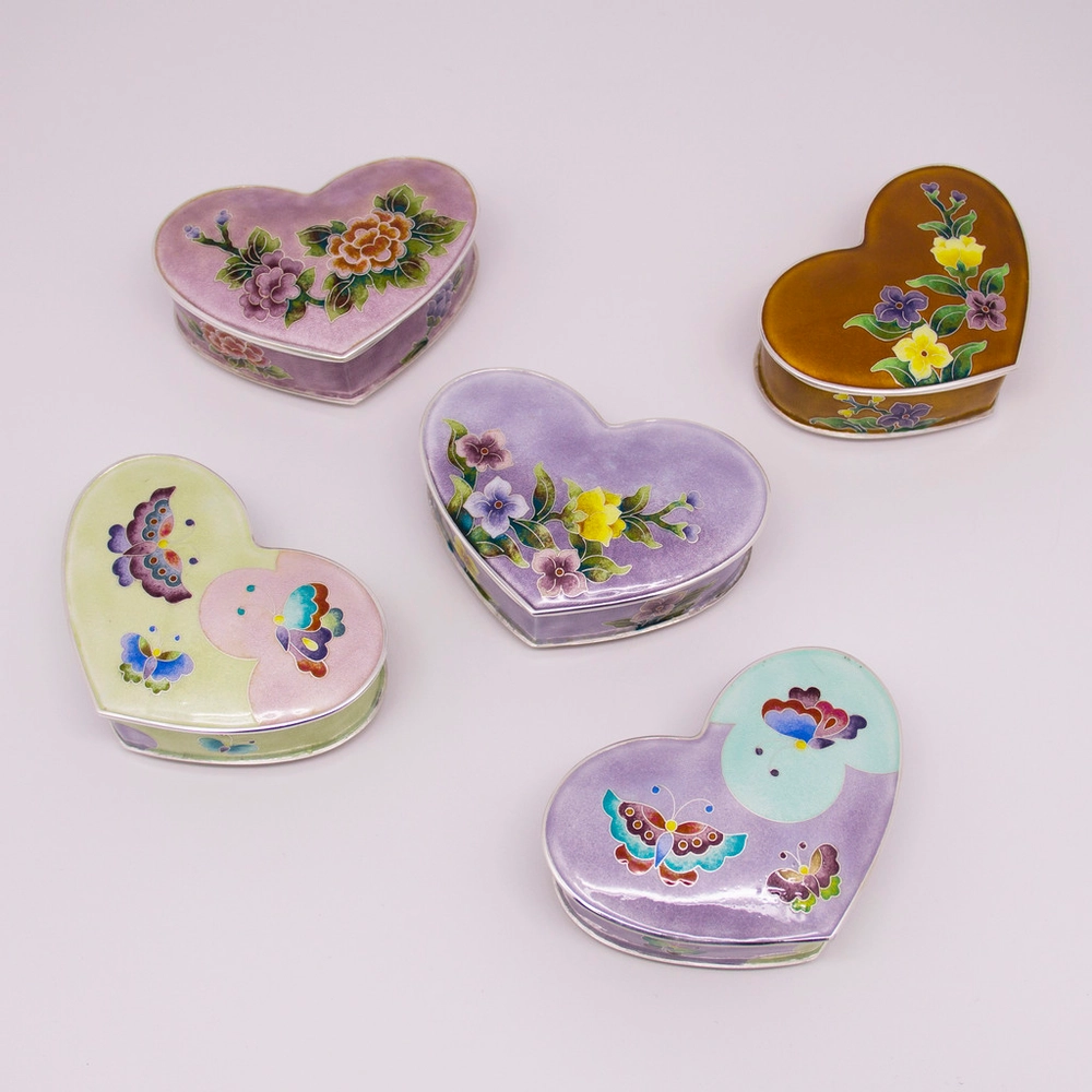 도라지꽃 은칠보 하트함 제비꽃색 Balloon Flower Silver Cloisonné Heart Chest