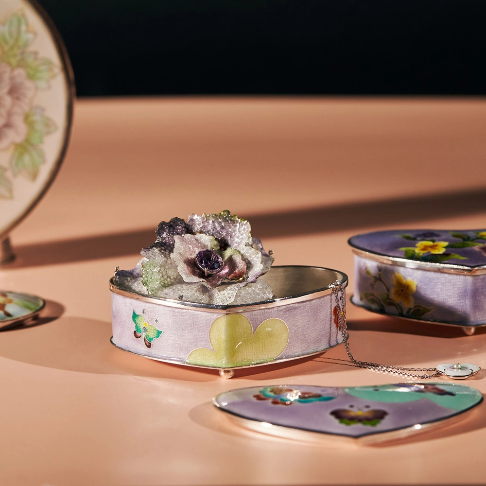 CHEYUL’s Balloon Flower Silver Cloisonné Heart Chest is a masterpiece that visually captures the essence of love, combining a heart shape—the symbol of unchanging affection—with the balloon flower’s meaning of "everlasting love." Decorated with intricate Chilbo (enamel) on a pure silver base, it radiates a beauty that is both subtle and sophisticated. This chest is an ideal sanctuary for preserving precious jewelry or mementos, serving as a prestigious gift that conveys sincere devotion.