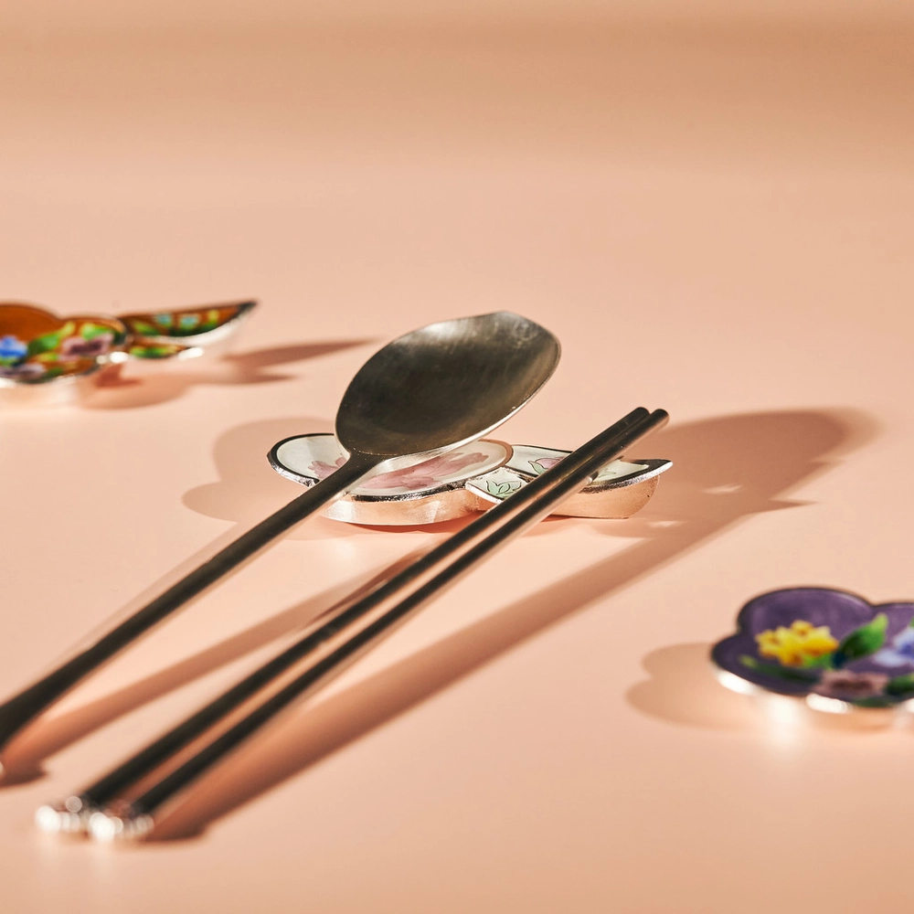 도라지꽃 은칠보 수저받침 제비꽃색 Balloon Flower Silver Cloisonné Spoon & Chopstick Rest