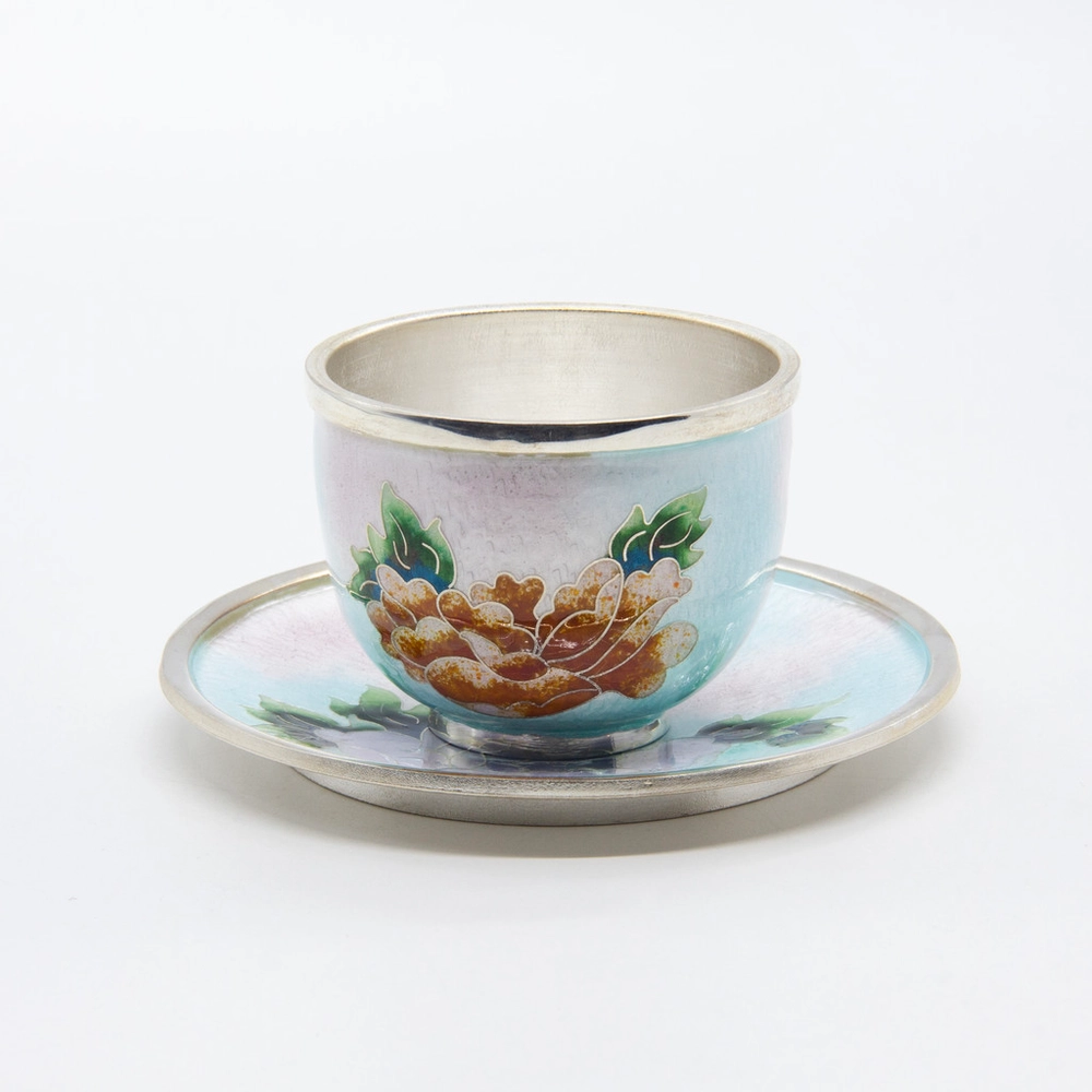 모란꽃 은칠보 술잔 소 하늘빛 Peony Silver Cloisonné Liquor Cup
